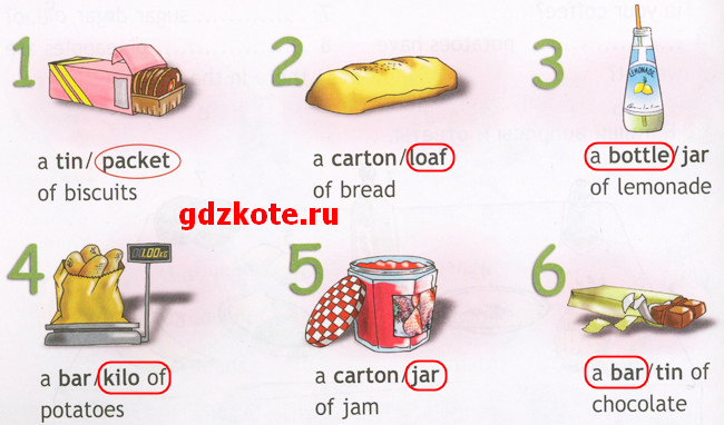 5. a carton/jar of jam — картонная коробка/стеклянная банка джема