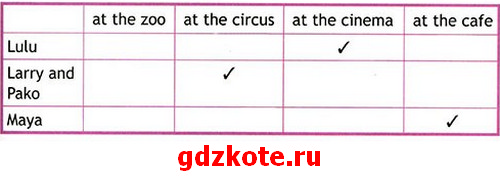 Larry and Paco were at the circus last Sunday. They weren’t at the cinema.Ларри и Пако были в цирке в прошлое воскресенье. Они не были в кино.