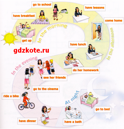В: She got up, had breakfast and went to school. What did Sheila do in the afternoon? — Она проснулась, позавтракала и пошла в школу. Что Шейла делала днем?