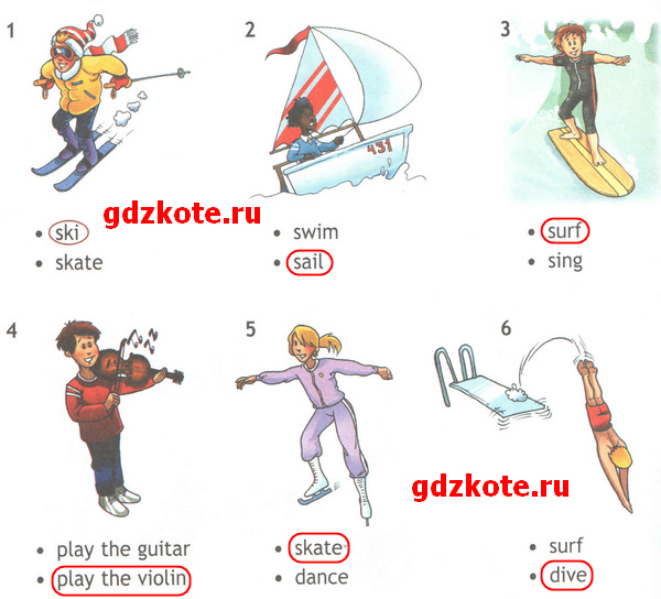 Посмотри на картинки и выбери соответствующий глагол.