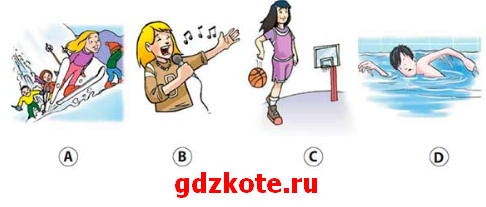 Match the sounds to the pictures: ‘Boing, boing, boing!’,‘Splash, splash, splash!’, ‘Tra-la-la!’, ‘Shloop, shloop, shloop!’ – Соотнеси звуки с картинками.