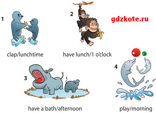 B: They’re clapping. They always clap at lunchtime. – [З’ей а: клэ’ппин:. З’ей о:лвэйз клэ’п эт ланчтайм] – Они хлопают. Они всегда хлопают в обеденное время.