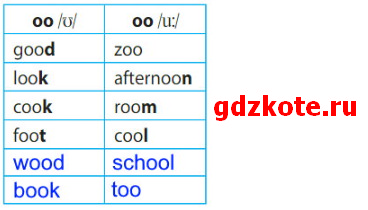 Read. Copy the table. Then put the words wood, school, book, too in the right column. – Прочитай. Скопируй таблицу. Затем поставь слова wood, school, book, too в правильную колонку.