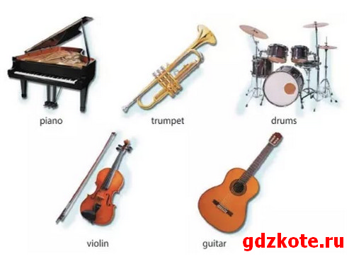 Match the sounds to the instruments. Which one is the loudest? – Прослушай запись и соотнеси музыку и инструмент. Какой инструмент самый громкий?