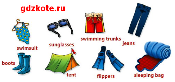 Я собираюсь на отдых на остров, и я собираюсь взять плавки, солнцезащитные очки и ласты.