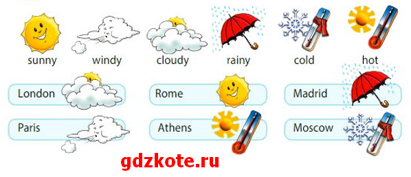 What will the weather be like tomorrow? Look and say. – Какая будет завтра погода? Посмотри и скажи.