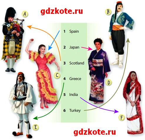 Look and match the costume to the country. – Посмотри и соотнеси страны и национальные костюмы.