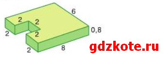 1) 8 • 6 • 0,8 — 2 • 2 • 0,8 = 38,4 — 3,2 = 35,2 (дм3) — объем детали