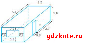 2) 2 • (5,4 • 2,6) + 2 • (3,5 • 2,6) — 1,7 • 1,5 — 2 • 0,8 = 2 • 14,04 + 2 • 9,1 — 2,55 — 1,6 = 28,08 + 18,2 — 2,55 — 1,6 = 46,28 — 2,55 — 1,6 = 43,73 — 1,6 = 42,13 (мsup>2) — площадь стен, не учитывая дверь и окно