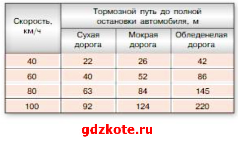 В таблице показана зависимость тормозного пути от скорости движения автомобиля. Найдите по сравнению с сухой дорогой, во сколько раз увеличивается тормозной путь автомобиля при движении по: а) мокрой дороге; б) обледенелой дорогой. Результат округлите до десятых. Какие выводы можно сделать из полученной информации?