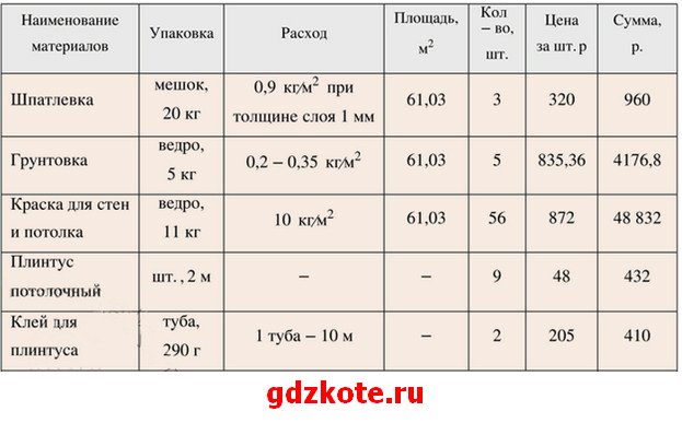 4) 42,13 • 250 = 10 532,5 (р.) – стоимость шпатлёвки для стен