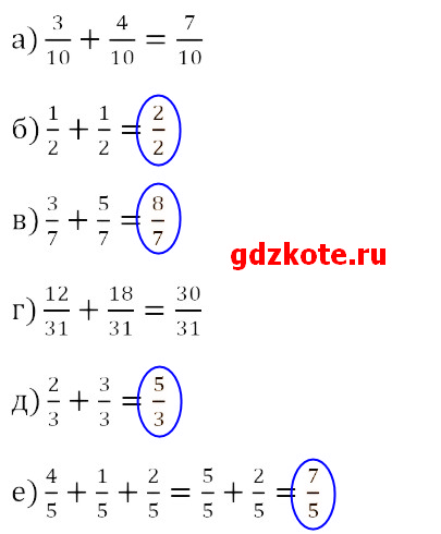 в) чтобы сложить дроби с одинаковыми знаменателями, нужно сложить их числители, а знаменатель оставить тот же? — верно