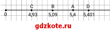 Какая из точек А(5,4), В(5,09), С(4,93), D(5,401) расположена на координатной прямой