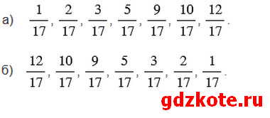 Запишите дроби 3/17, 1/17, 12/17, 10/17, 2/17, 5/17, 9/17 в порядке: