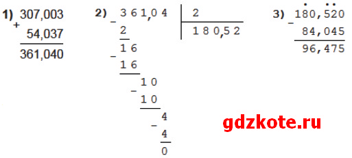 а) (54,037 + 307,003) : 2 – 84,045 = 96,475