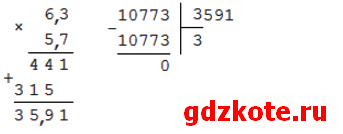 107,73 : (6,3 ∙ 5,7) = 107,73 : 35,91 = 10 773 : 3591 = 3 (м) – высота
