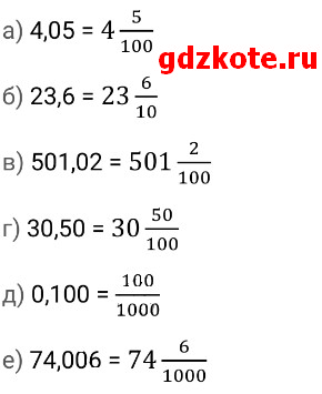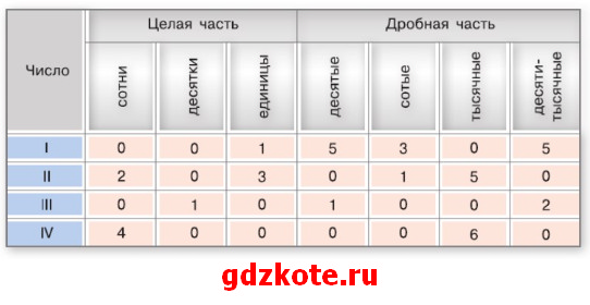 Запишите в виде десятичных дробей числа из таблицы.