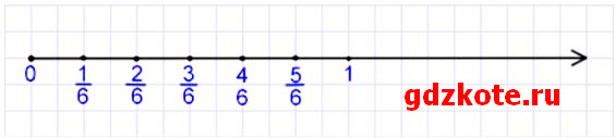 а) 1/6, 2/6, 3/6, 4/6, 5/6.