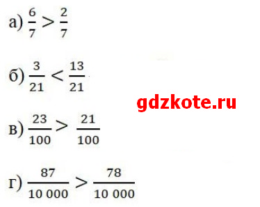 Пояснение: из двух дробей с одинаковыми знаменателями меньше та, у которой числитель меньше.