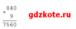 1) 840 ∙ 9 = 7560 (г) — масса 9 контейнеров риса