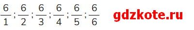 б) Неправильные дроби с числителем 6 (всего 6 дробей):