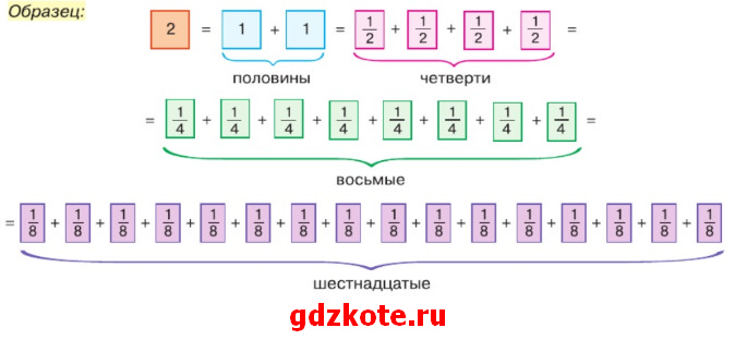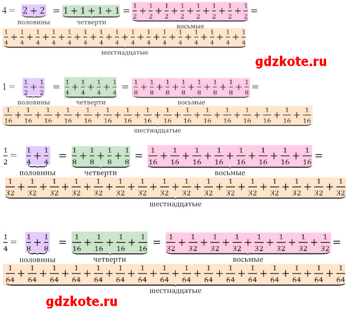 Числа 4, 1, 1/2,1/4 представьте в виде суммы из половин, четвертей, восьмых и шестнадцатых.