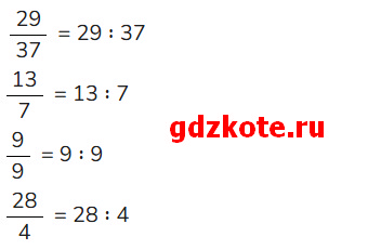 б) Представьте в виде частного дроби 29/37, 13/7, 9/9 и 28/4.