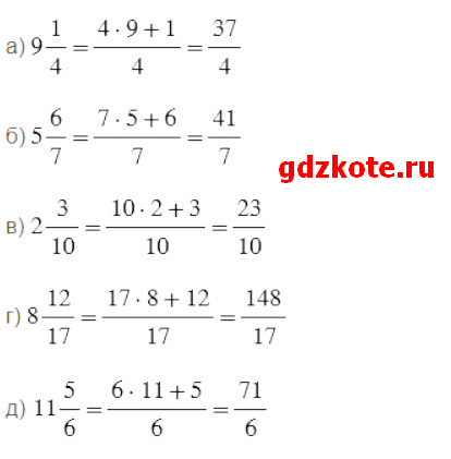 Используя образец, представьте в виде неправильной дроби смешанные числа: