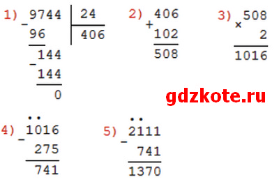 1) 2111 — ((9744 : 24 + 102) · 2 — 275) = 1370