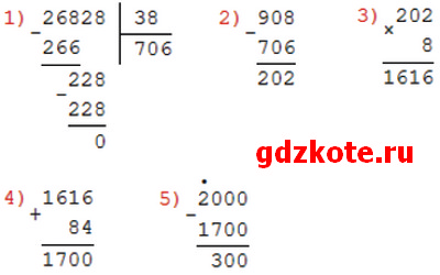 2) 2000 — ((908 — 26 828 : 38) · 8 + 84) = 300