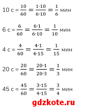 Какую часть минуты составляют 10 с, 6 с, 4 с, 20 с, 45 с?