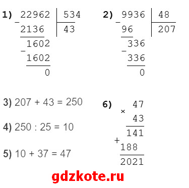 а) ((22 962 : 534 + 9936 : 48) : 25 + 37) ∙ 43 = 2021