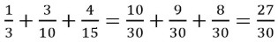 Велосипедист в первый час проехал 1/3 пути, во второй час – 3/10 пути, а в третий час – 4/15 пути. Какую часть пути велосипедисту осталось проехать?