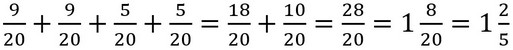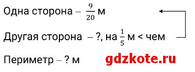 Одна сторона прямоугольника равна 9/20 м, а другая на 1/5 м меньше. Найдите периметр прямоугольника.