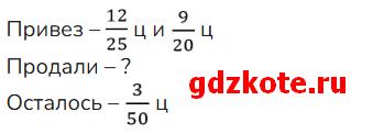Пасечник привез на медовую ярмарку 12/25 ц цветочного меда и 9/20 ц липового мёда. К концу работы ярмарки у него осталось 3/50 ц мёда. Сколько мёда продал на ярмарке пасечник?