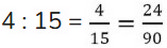 2) 4 : 15 =