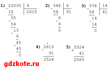 а) 23 535 : 9 — 546 : 6 + 574 : 14 = 2565