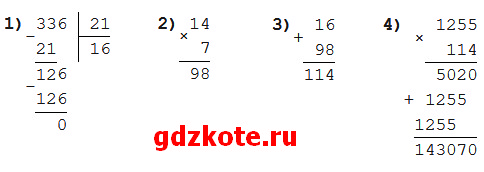 б) (336 : 21 + 7 · 14) · 1255 = 143 070