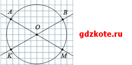 Проведены две прямые, которые пересекают окружность с центром О и радиусом 2 см 5 мм в точках А, В, М и К. Найдите расстояние от центра окружности до этих точек.