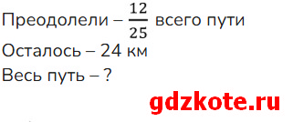 После того как туристы преодолели на байдарках 12/25 всего пути, им осталось пройти ещё 24 км. Чему равны протяжённость пути туристов?