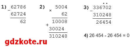 б) 336 702 – 5004 ∙ (62 786 – 62 724) – 26 454 = 0