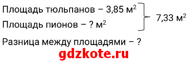 1) 7,33 — 3,85 = 3,48 (м2) – занимают пионы