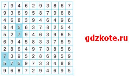 г) пара чисел 5 и 7, стоящих в соседних клетках.