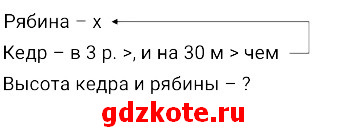Пусть x м – высота рябины, тогда высота кедра 3x м. По условию, кедр на 30 м выше рябины.