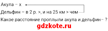 2) Дельфин за один час проплывает в 2 раза большее расстояние, чем акула. Акула за час проплывает на 25 км меньше дельфина. Какое расстояние проплывает за час дельфин, а какое — акула?