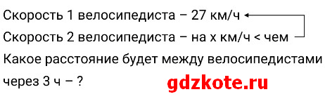 Два велосипедиста выехали из одного пункта одновременно в одном направлении. Скорость одного из них равна 27 км/ч, что на x км/ч больше скорости другого. Какое расстояние будет между велосипедистами через 3 ч?