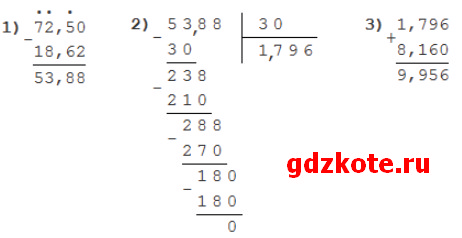 б) (72,5 – 18,62) : 30 + 8,16 = 9,956