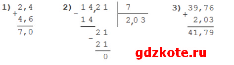 в) 39,76 + 14,21 : (2,4 + 4,6) = 41,79