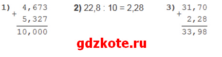 г) 31,7 + 22,8 : (4,673 + 5,327) = 33,98