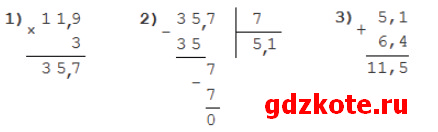 д) 11,9 ∙ 3 : 7 + 6,4 = 11,5